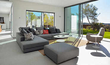 The house is equipped with an old-fashioned kitchen and two modern bathrooms, it also has a cozy living room, three bedrooms, a spacious dining room, a lounge area and a cozy garage. The building is square shaped. The house is fully surrounded by a covered patio.