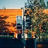 The roof is high and slanted to one side and is covered with grey ceramic tiles. One large chimney pokes out the center of the roof. Large, skylight windows let in plenty of light to the rooms below the roof.